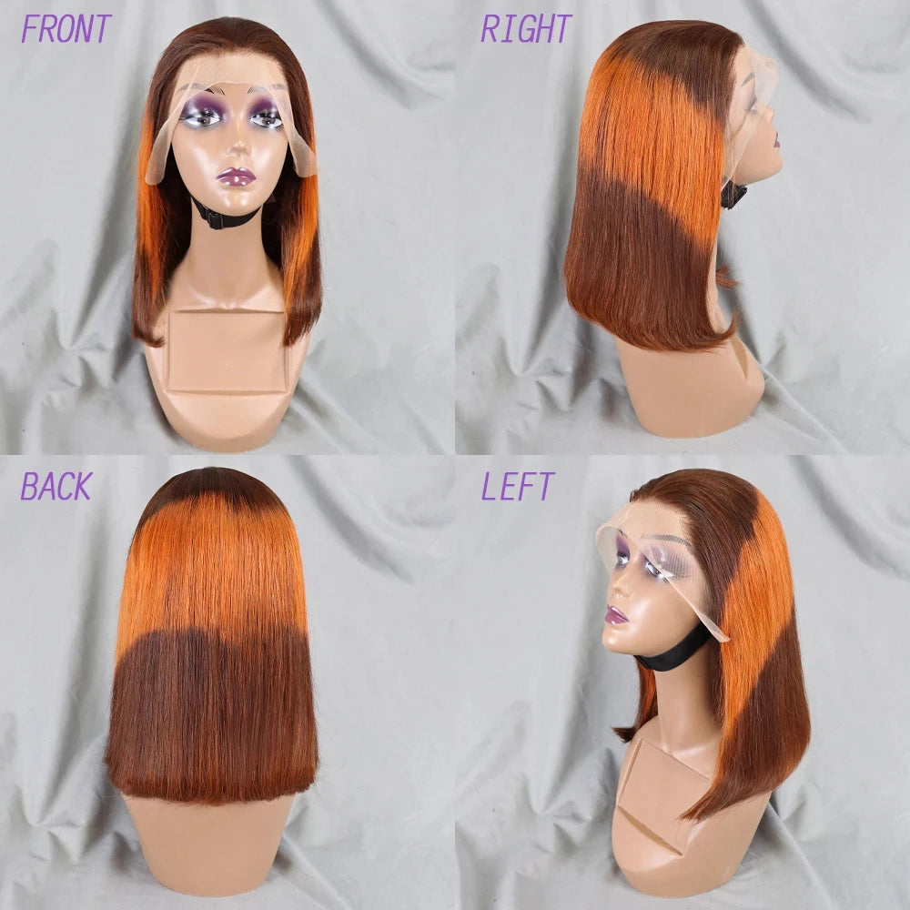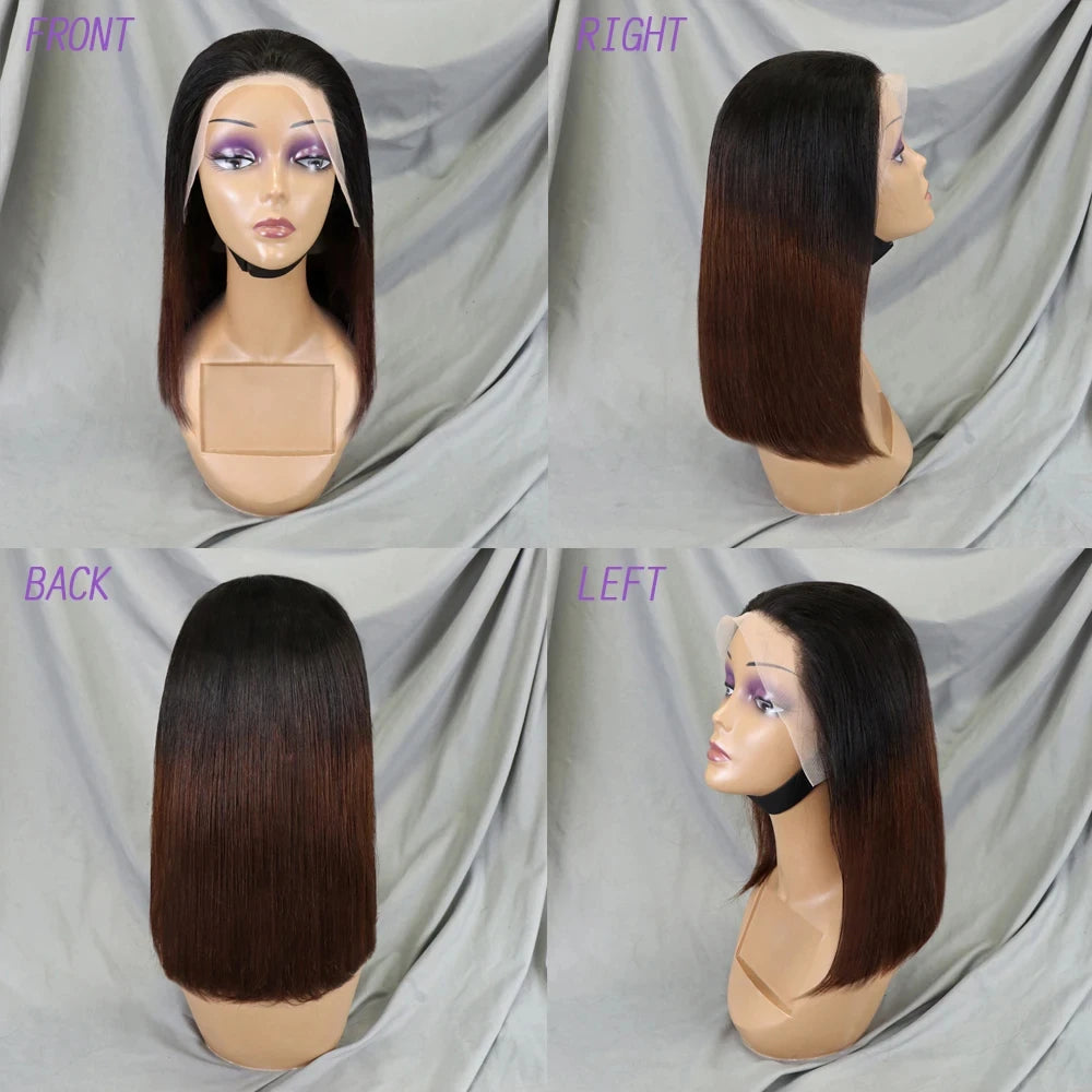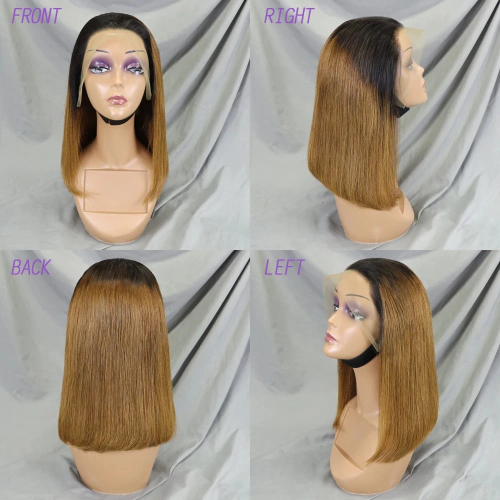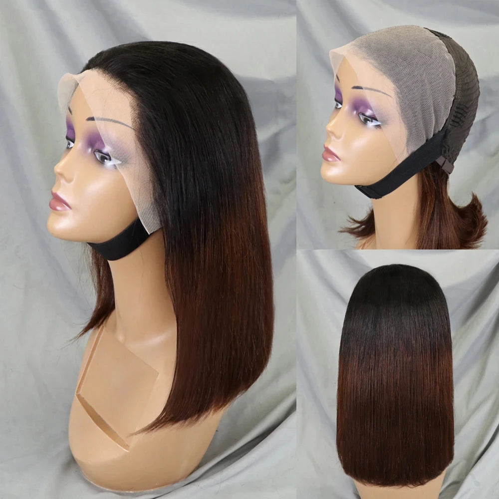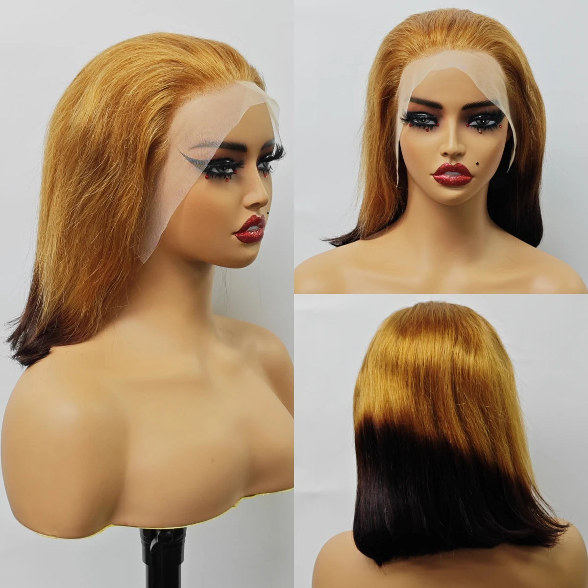 10-16 Inch 200% Density Straight Bob Wigs 30T4 Ombre Transparent 13x4 Lace Frontal Wigs Brazilian Remy Human Hair Wigs for Women