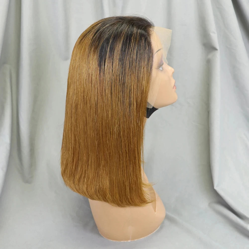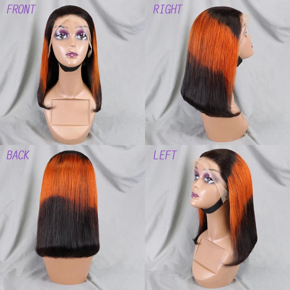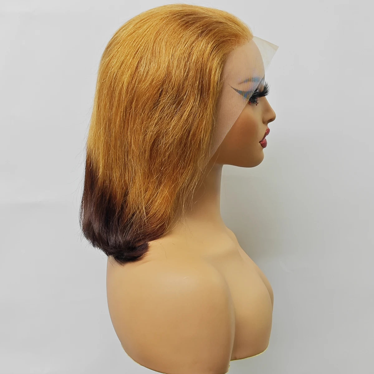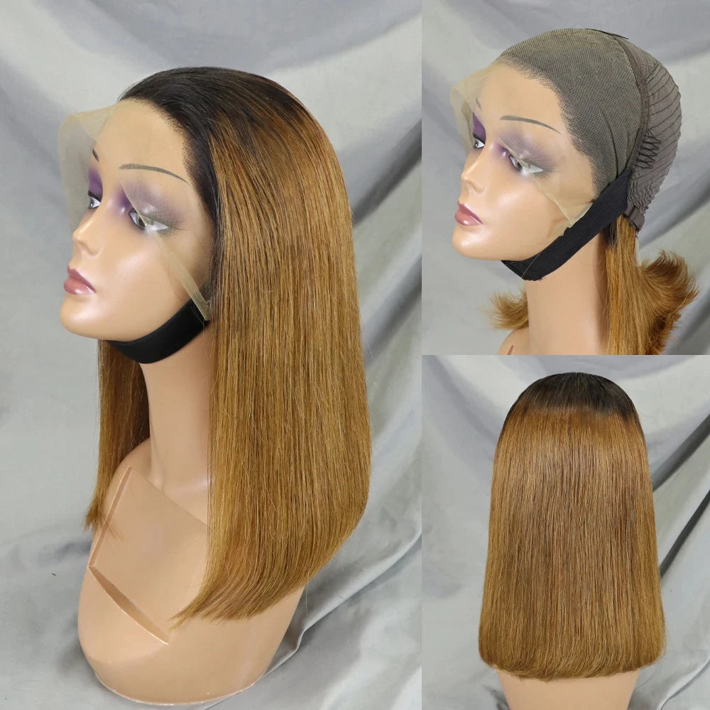 10-16 Inch 200% Density Straight Bob Wigs 30T4 Ombre Transparent 13x4 Lace Frontal Wigs Brazilian Remy Human Hair Wigs for Women