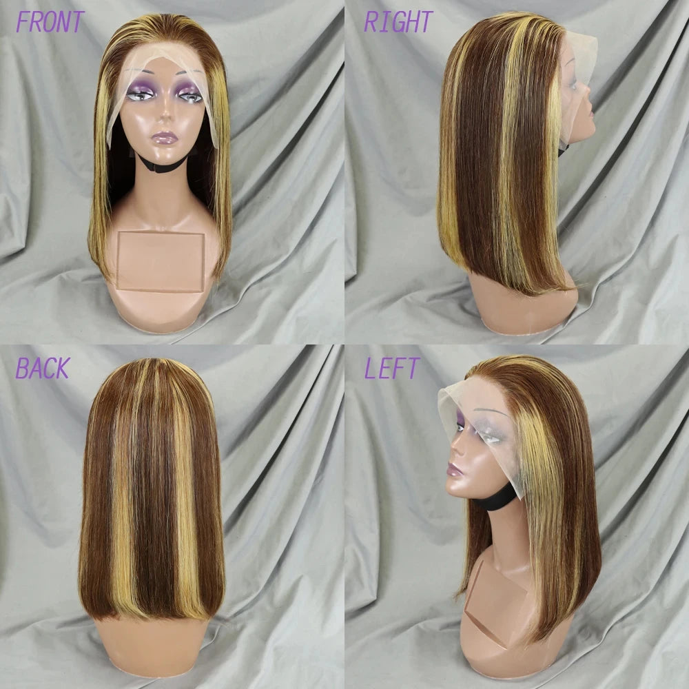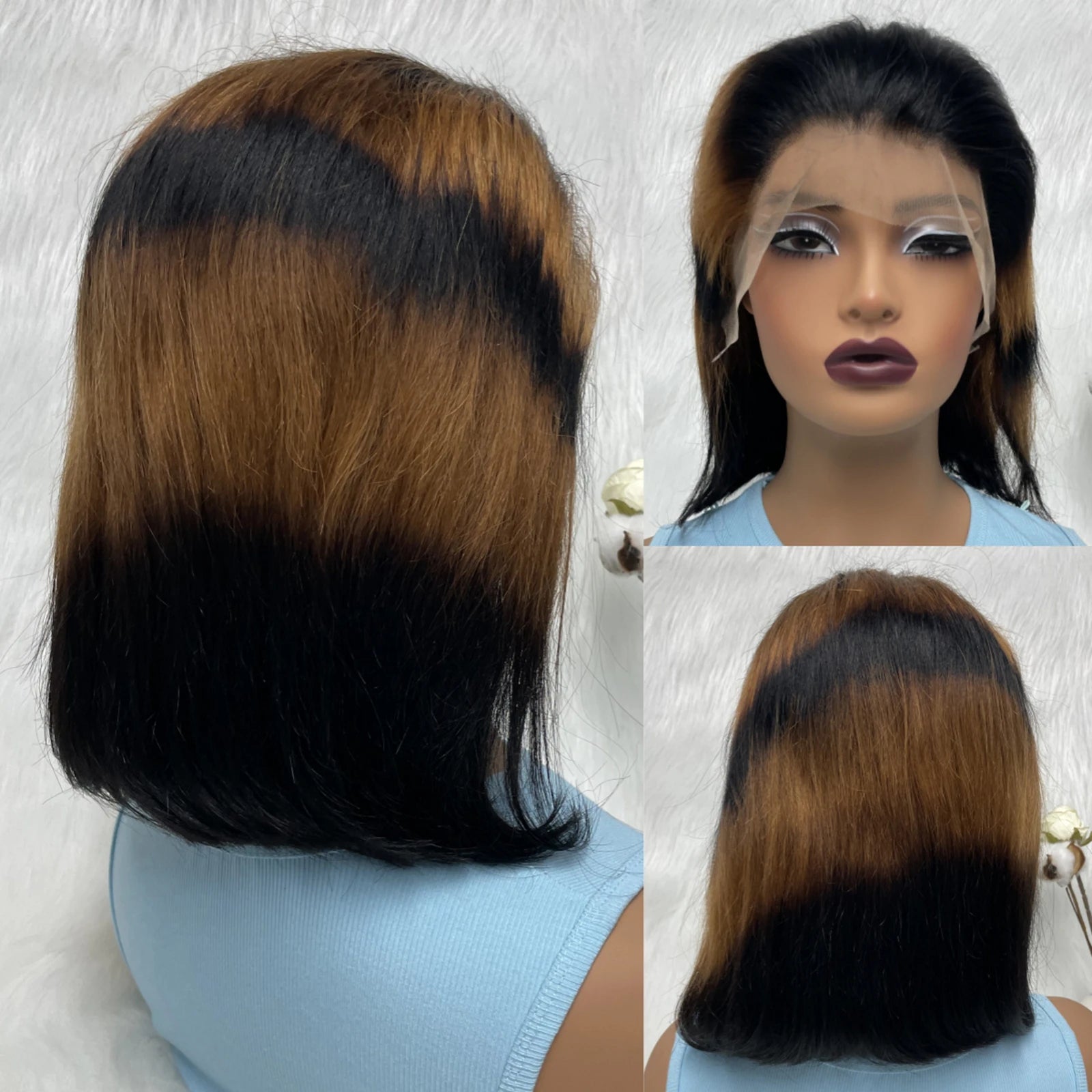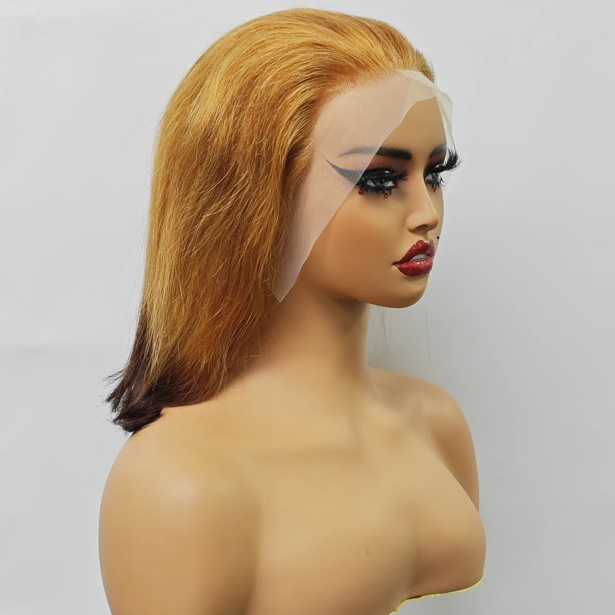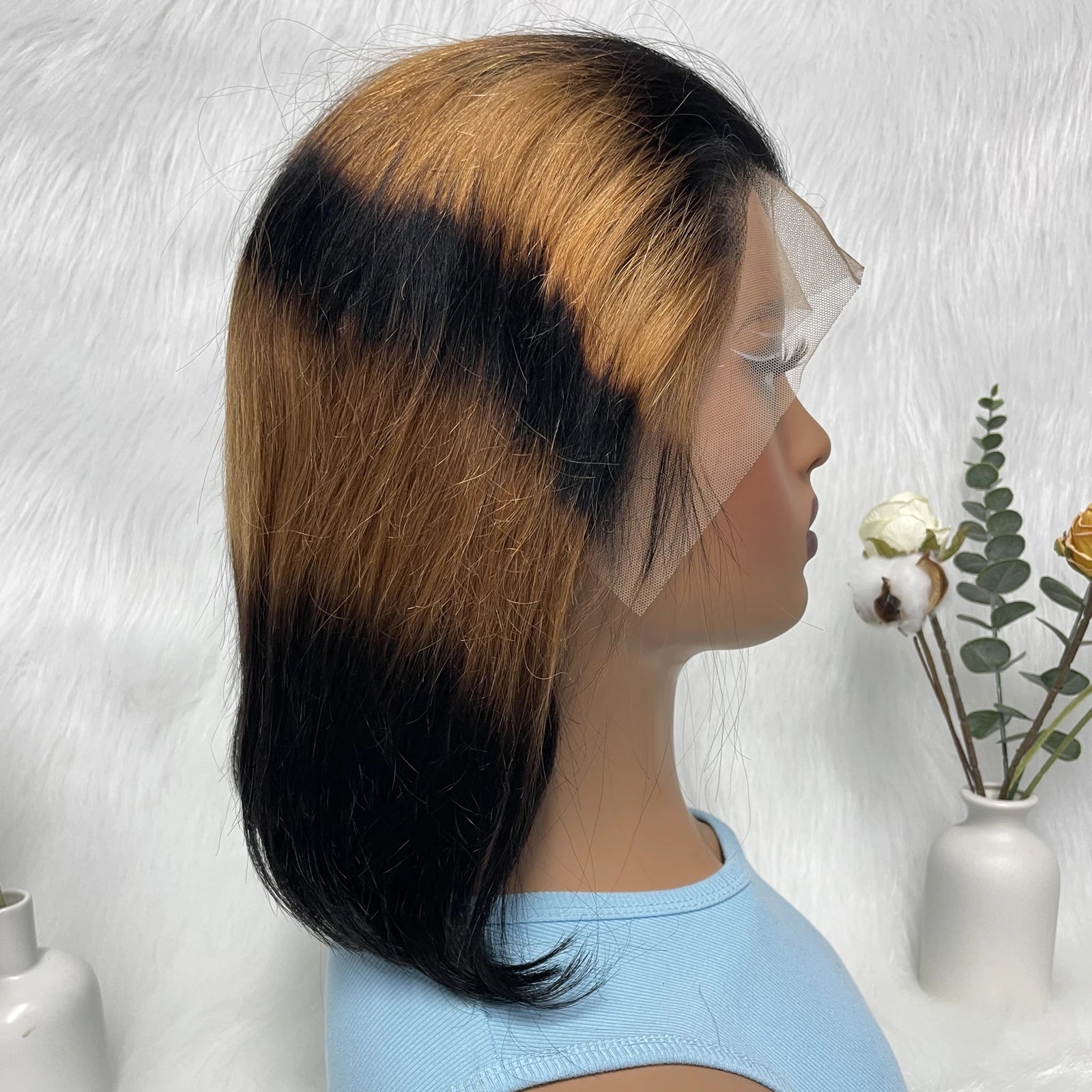 10-16 Inch 200% Density Straight Bob Wigs 30T4 Ombre Transparent 13x4 Lace Frontal Wigs Brazilian Remy Human Hair Wigs for Women