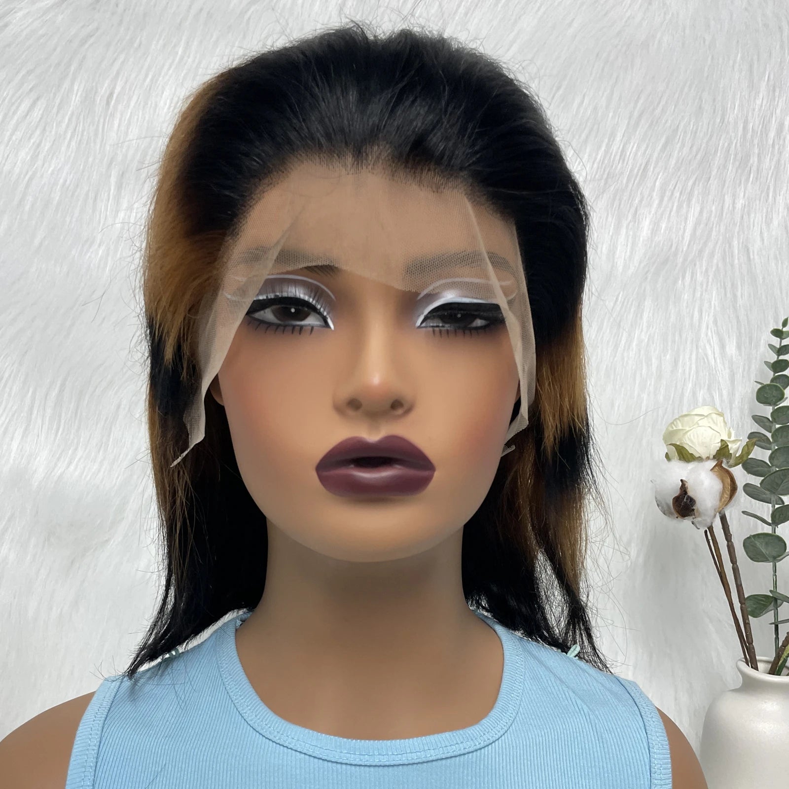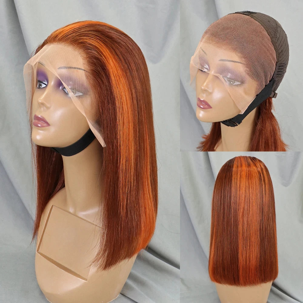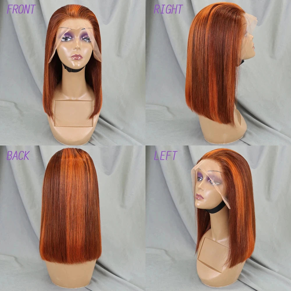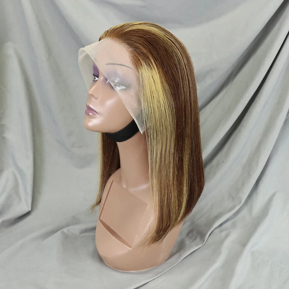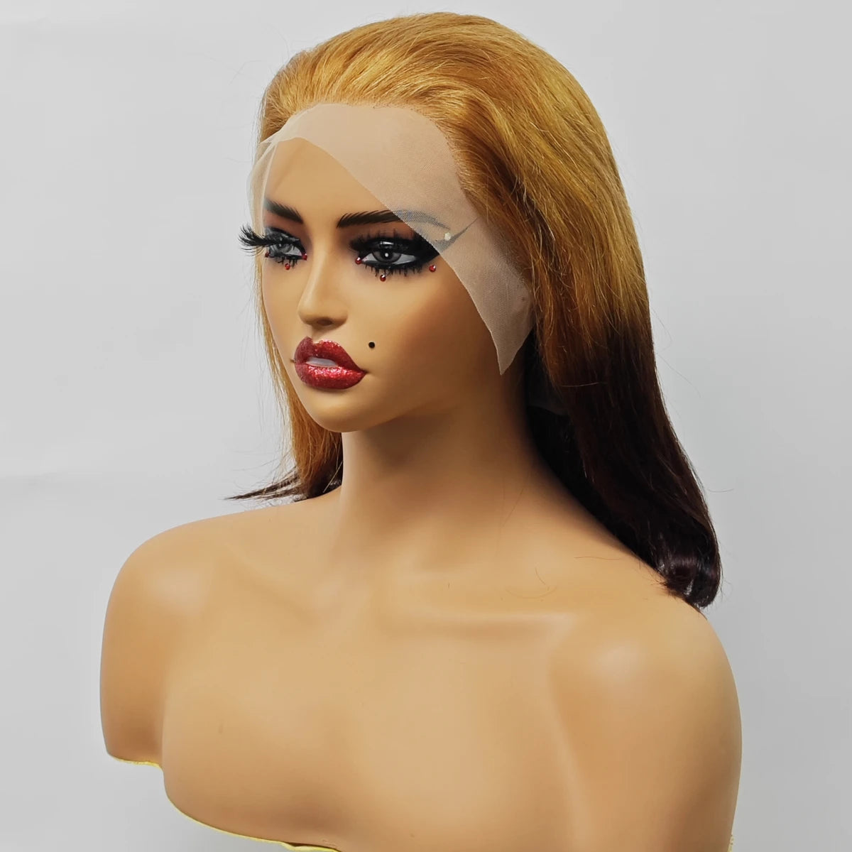 10-16 Inch 200% Density Straight Bob Wigs 30T4 Ombre Transparent 13x4 Lace Frontal Wigs Brazilian Remy Human Hair Wigs for Women