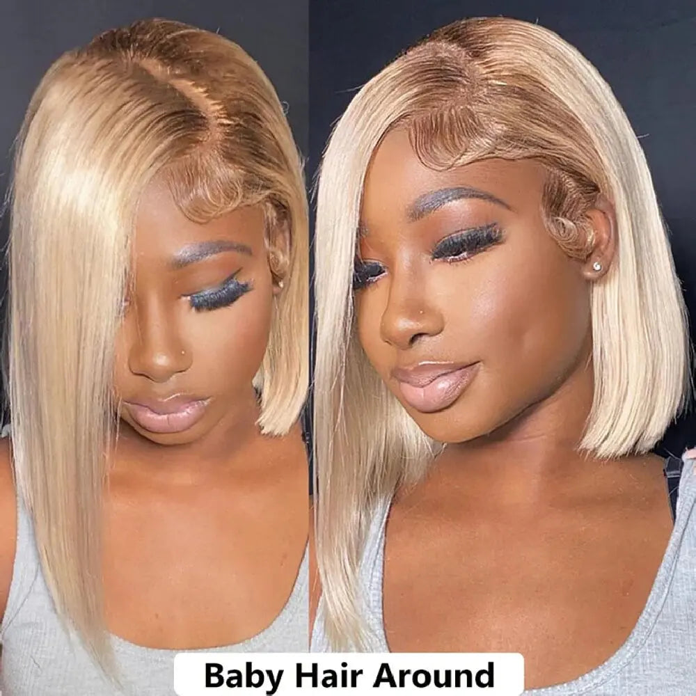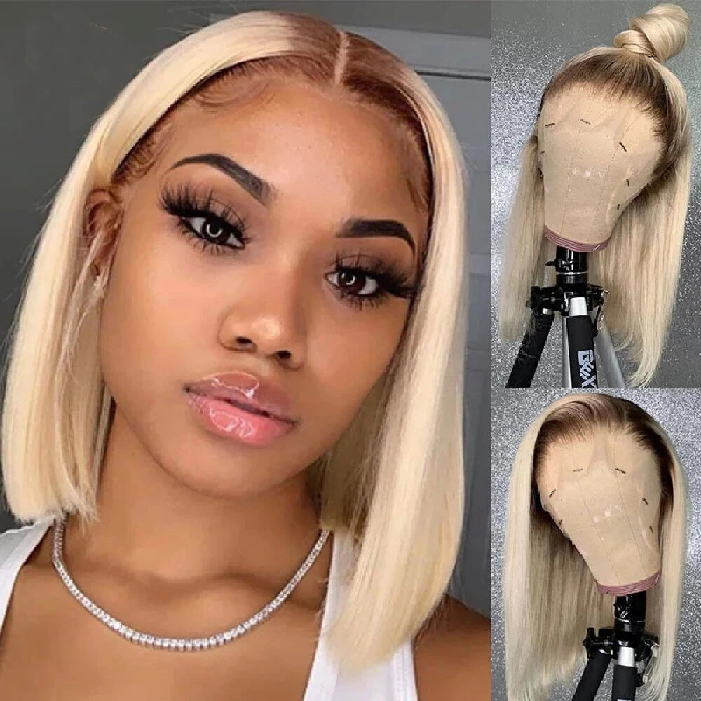 13x4 613 Blonde BOB Ombre Lace Fornt Wig Short Straight Bob Braizilian Human Hair Wigs Transparent Lace Frontal Wig Preplucked