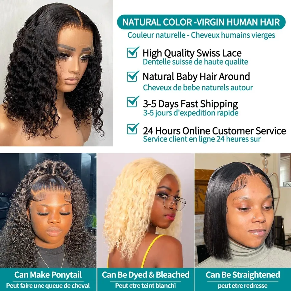 13x4 Bob Wigs Jerry Curly Short Human Hair Natural Black Brazilian Deep Curly Wigs For Black Woman