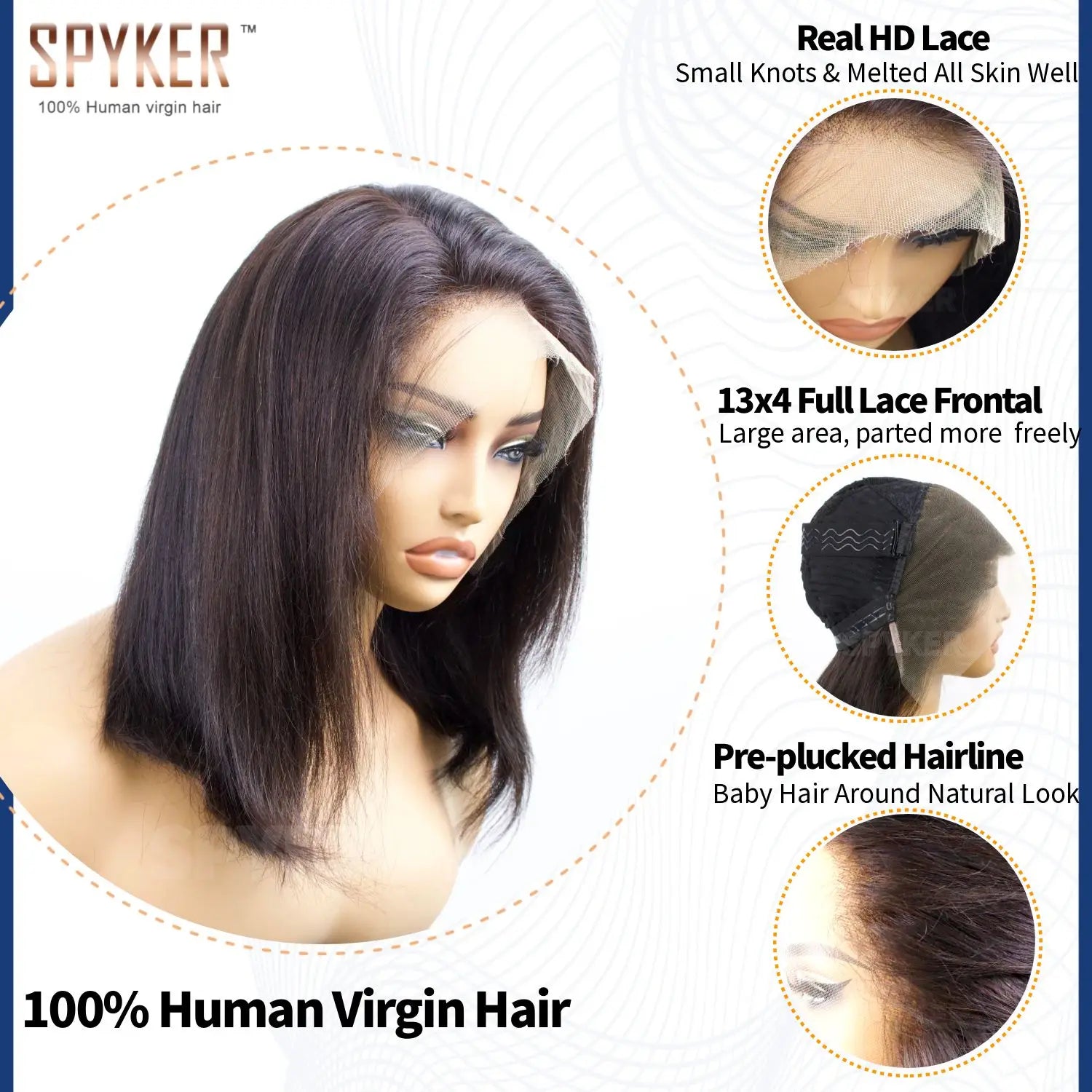 13x4 Real HD Lace Frontal Bob Human Hair Wigs 100%Human Hair Quality 200% Density Pre Plucked Hairline And Baby Hair Around