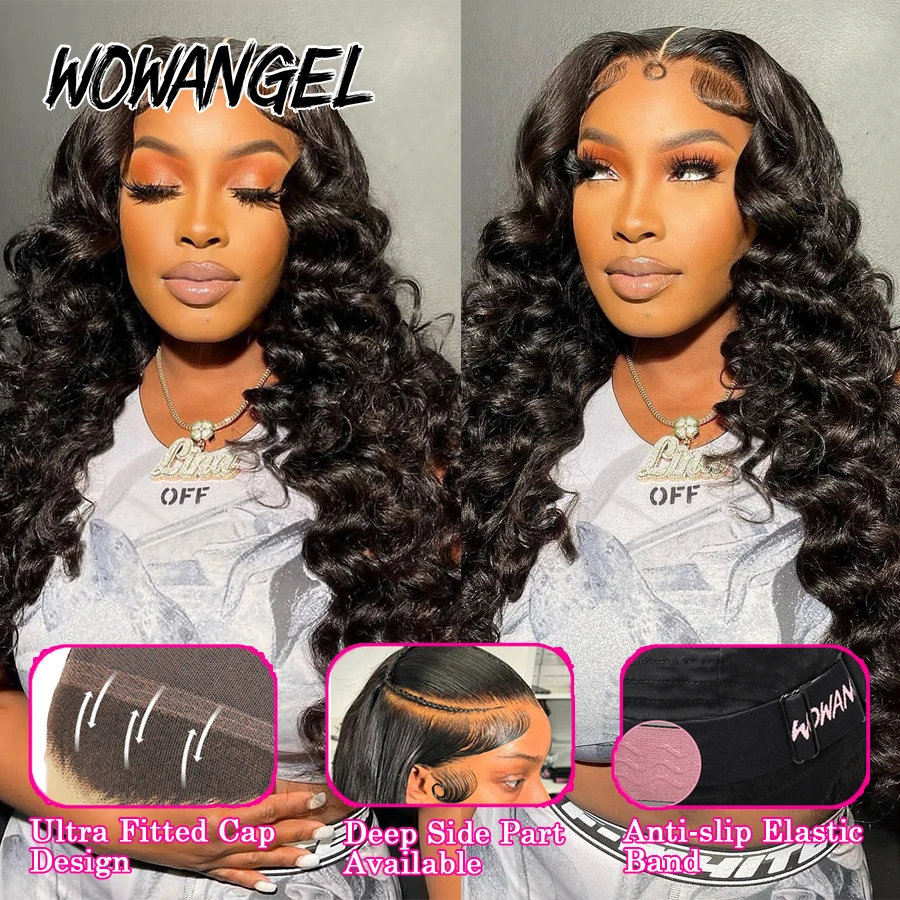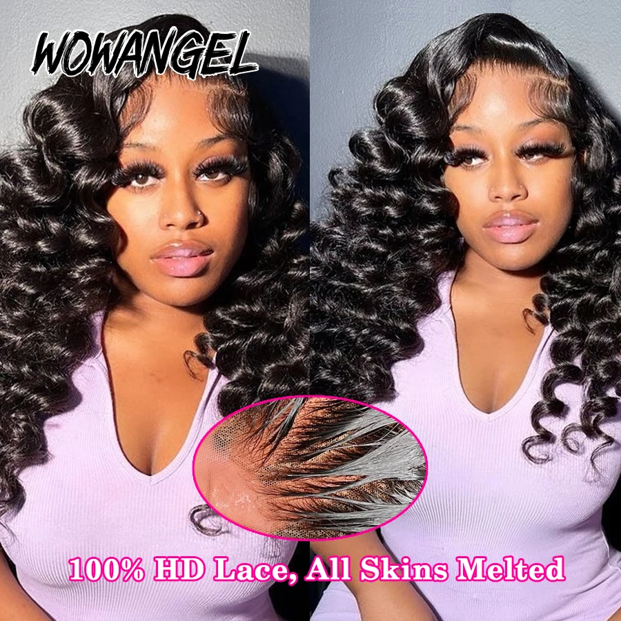 WOWANGEL 34in 13x6 HD Lace Front Human Hair Wigs 250% Loose WaveWigs Skins Melted Deep Parting Remy Brazilian Hair For Women