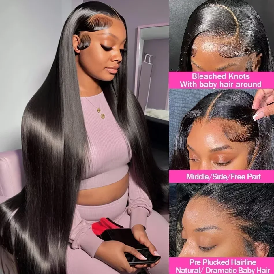 30 38 Long Inch 13x4 HD Lace Front Wig Brazilian Straight Human Hair Wig For Women 200 Density 13x6 Transparent Lace Frontal Wig
