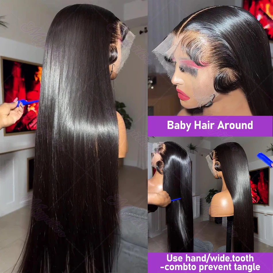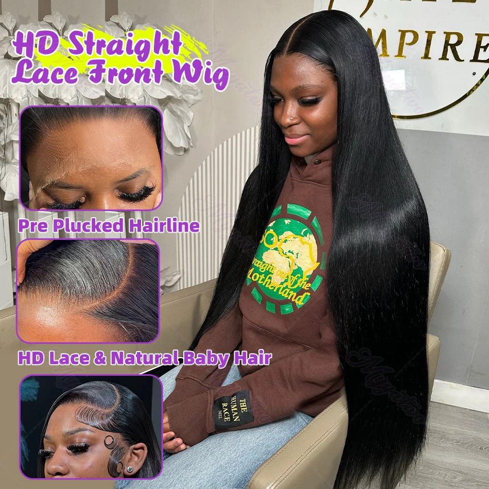 30 40Inch Bone Straight 13x6 HD Transparent Lace Front 100% Human Hair Wigs 250 Density 13x4 Lace Frontal Raw Hair Wig For Women