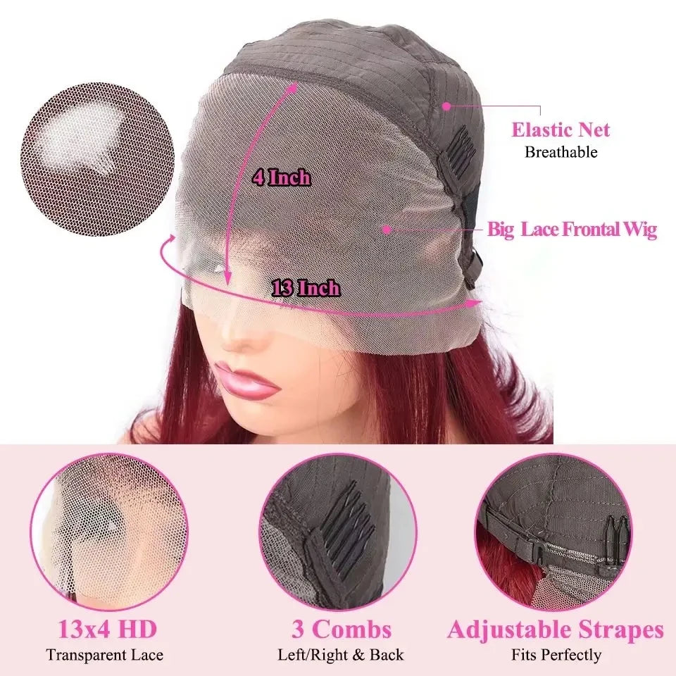 Hair Type 2: 99J Burgundy 13X4 Straight Bob Wig Human Hair