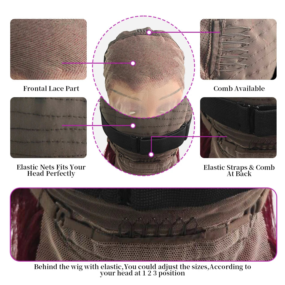 99J Burgundy Short Bob Wigs Human Hair 13x4 Lace Front Wig Deep Wave Pre plucked Transparent Lace Frontal Wig 250 Density