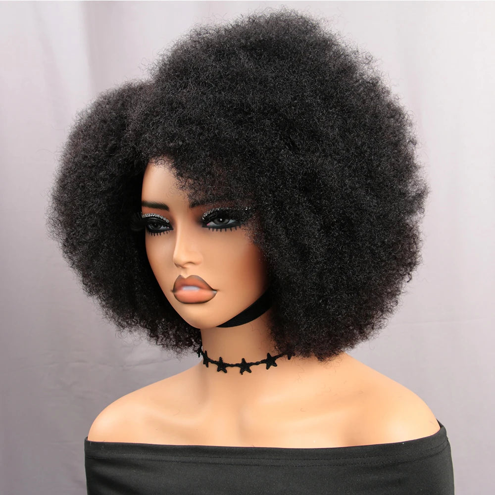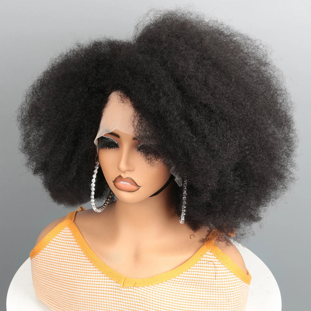 Afro Kinky Curly Lace Front Wig Natural Color Afro Bob Human Hair Natural Hairline 13X4X2 250% Density Short Human Hair Wigs