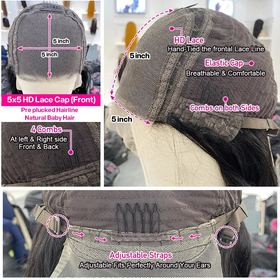 Cynosure 5x5 HD Lace Closure Wig Body Wave Full HD Transparent Lace Human Hair Wigs For Women 30 Inch Remy 4x4 Closure Wigs