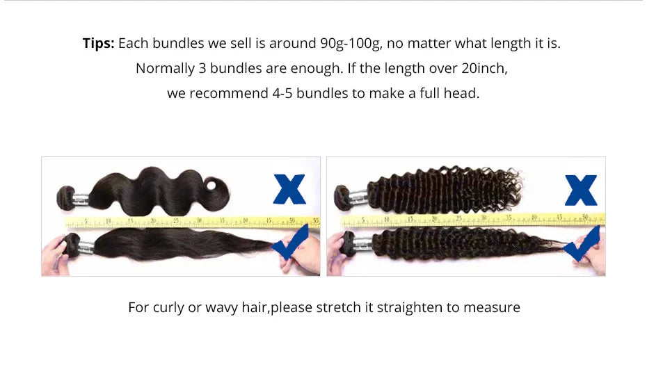 • Hair Material: Best Selected Unprocessed Natural 100% Human Hair