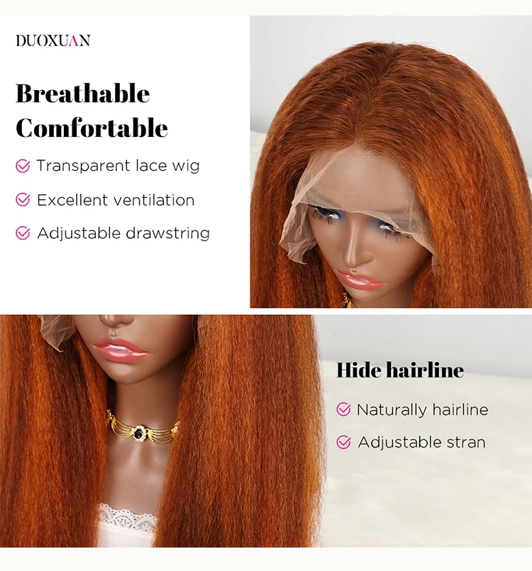 Duoxuan Hair Kinky Straight 13x6 Lace Front Human Hair Wigs 100% Human Hair Wigs Transparent Lace Brazilian Yaki Straight Wig