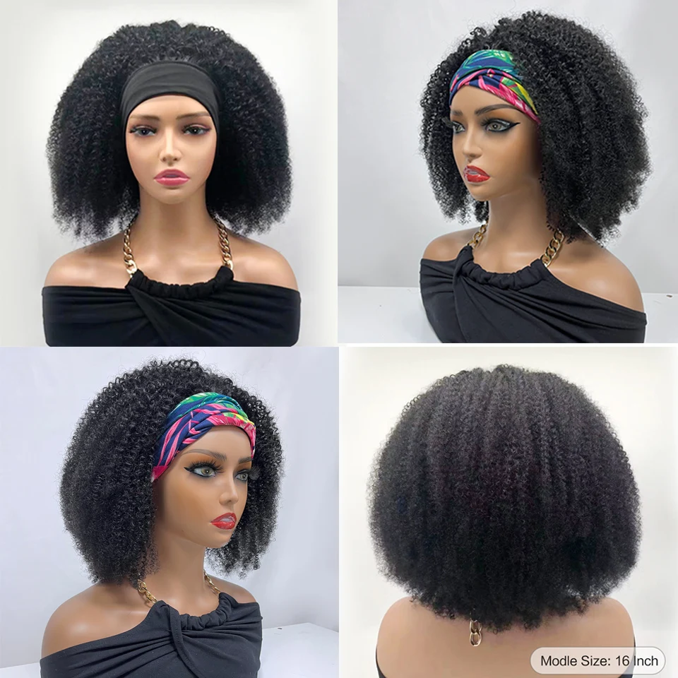 Headband Wig Human Hair Afro Kinky Curly Human Hair Wigs For Women Short Bob Wig Kinky Curly Human Hair Wigs None Lace Gluelees