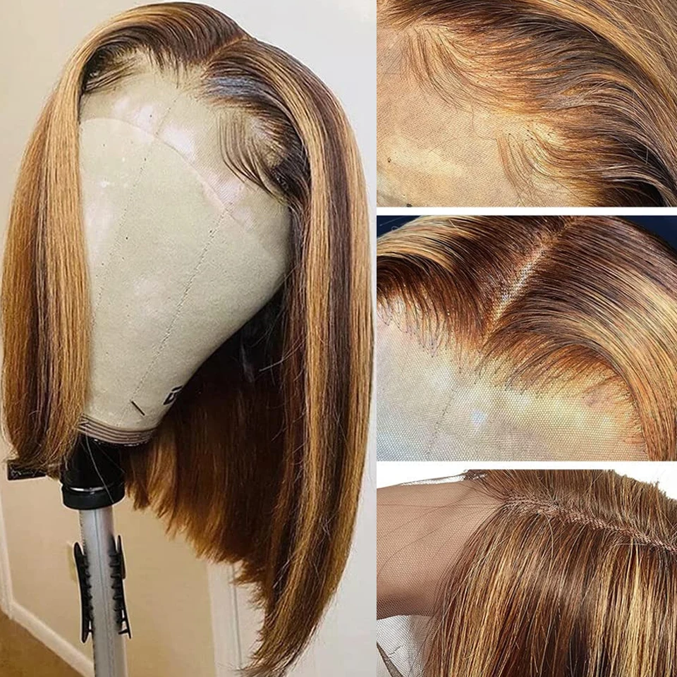Highlight Wigs Human Hair Straight Bob Wig 4/27 Ombre 13x4 Lace Front Human Hair Wig 100% Remy Hair Pre Plucked Transparent Lace