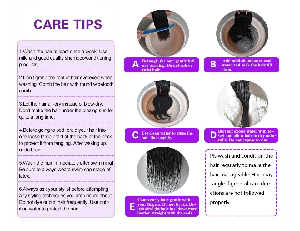Care Tips: Kindly remind you that the hair need to be cared every 2-3 days, curly hair can not combed through is normal,please ensure detangle the end before you unfold the hair to wash