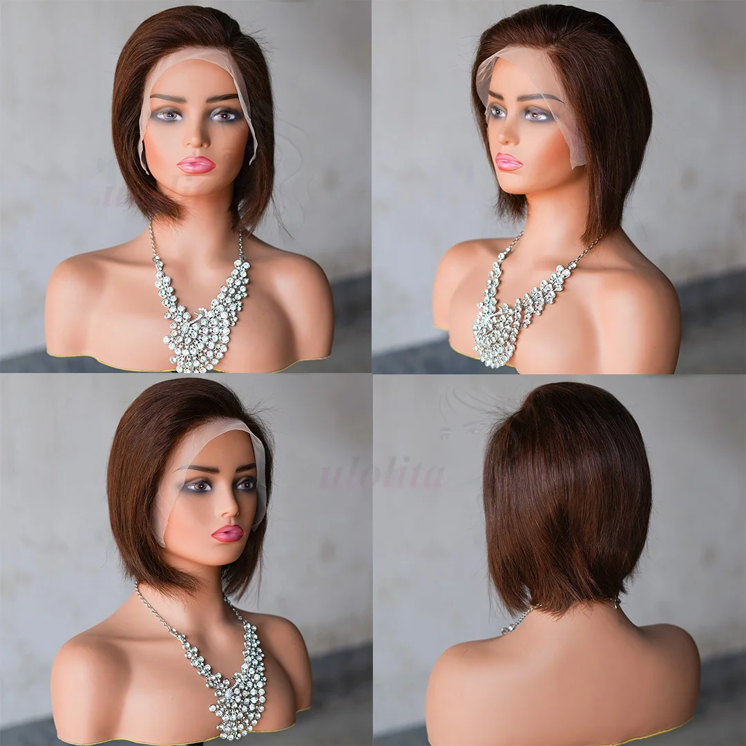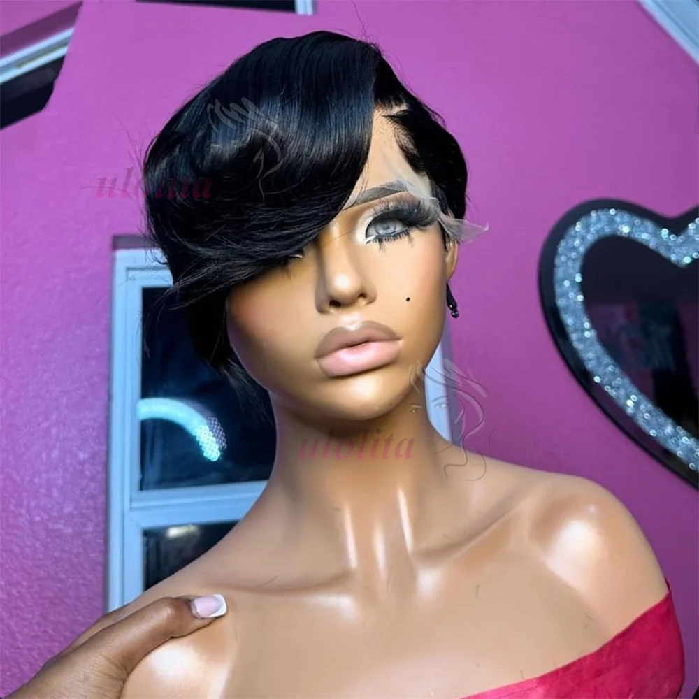 Pixie Cut 13x4 Transparent Lace Front Wigs For Women Short Bob Wig Brazilian Pre Plucked Lace Frontal Human Hair Wig 180 Density