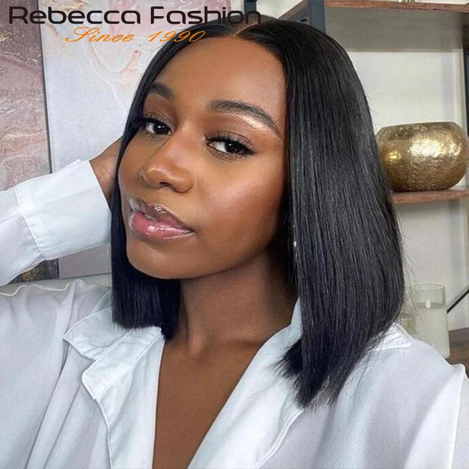 Ready To Go Short Straight Bob 100% Human Hair Lace Wig For Women Brazilian Remy Hair Pixie Middle Part Lace Easy Wear