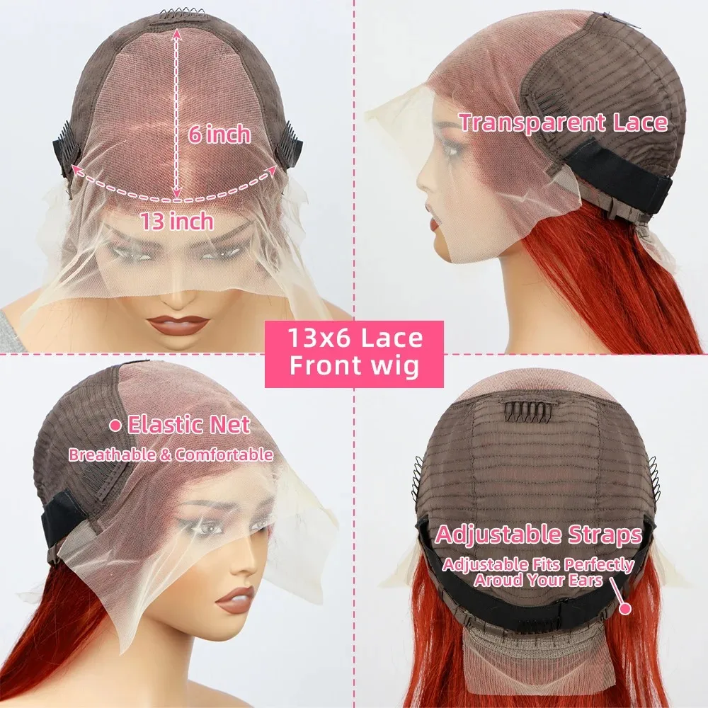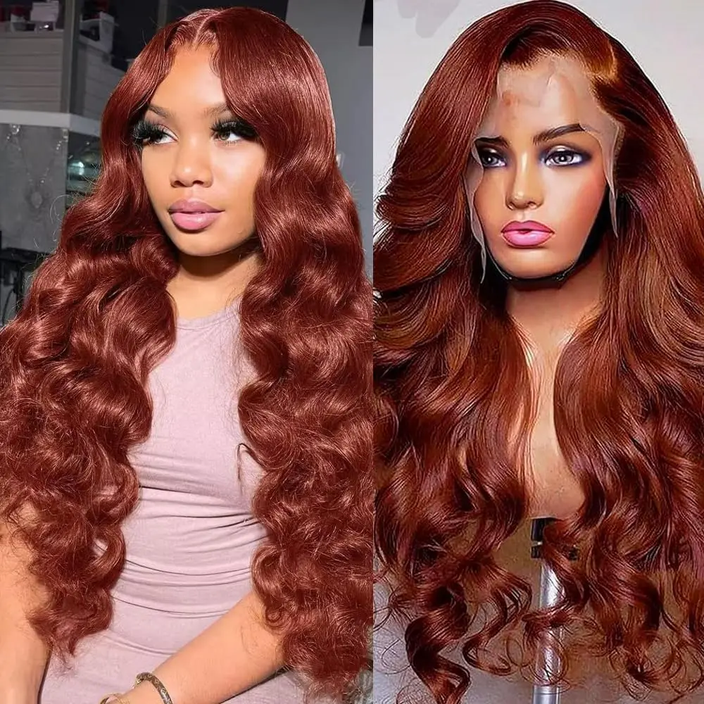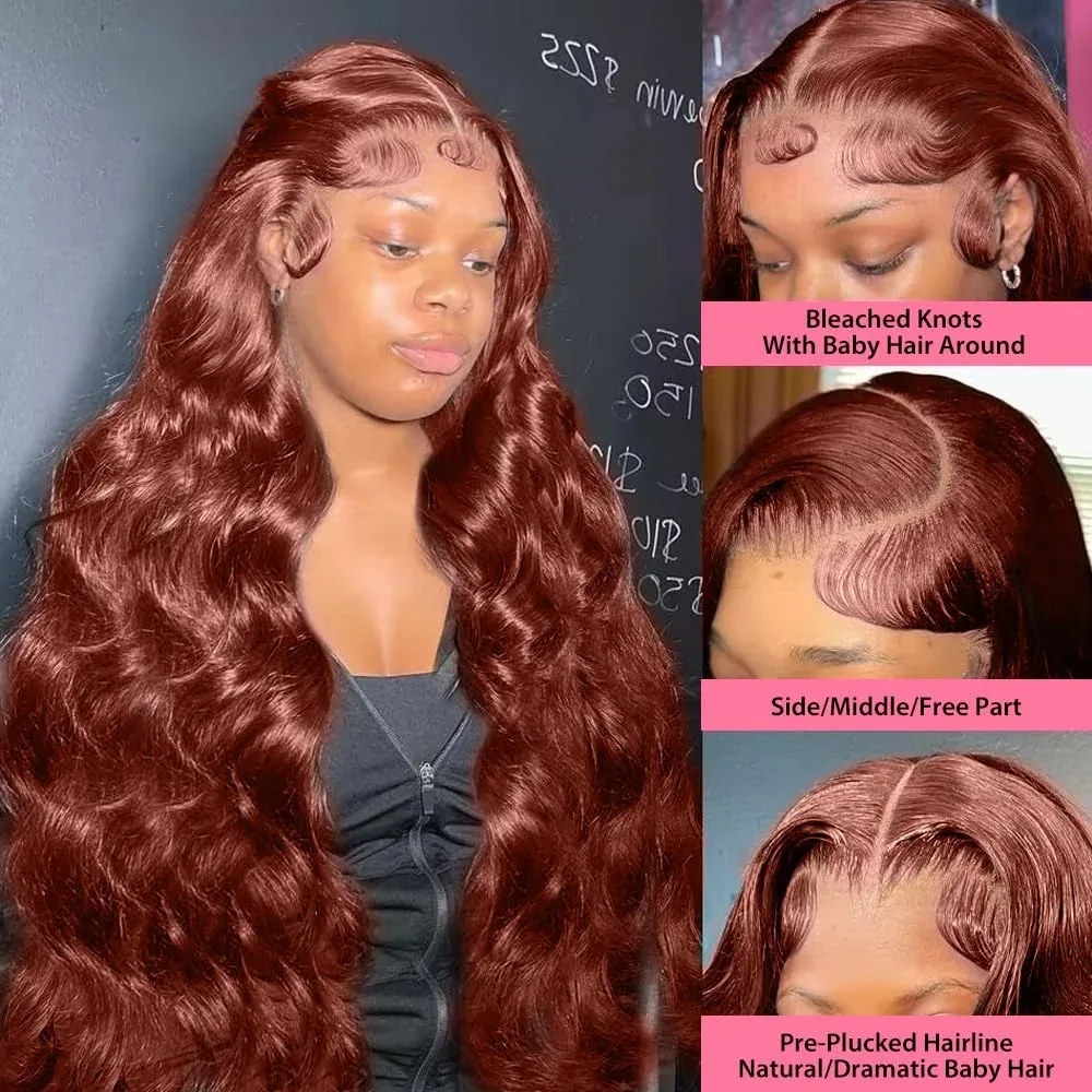Reddish Brown 13x6 Lace Front Wigs Human Hair Pre Plucked 180% Density Body Wave Auburn Colored Human Hair Lace Frontal Wig