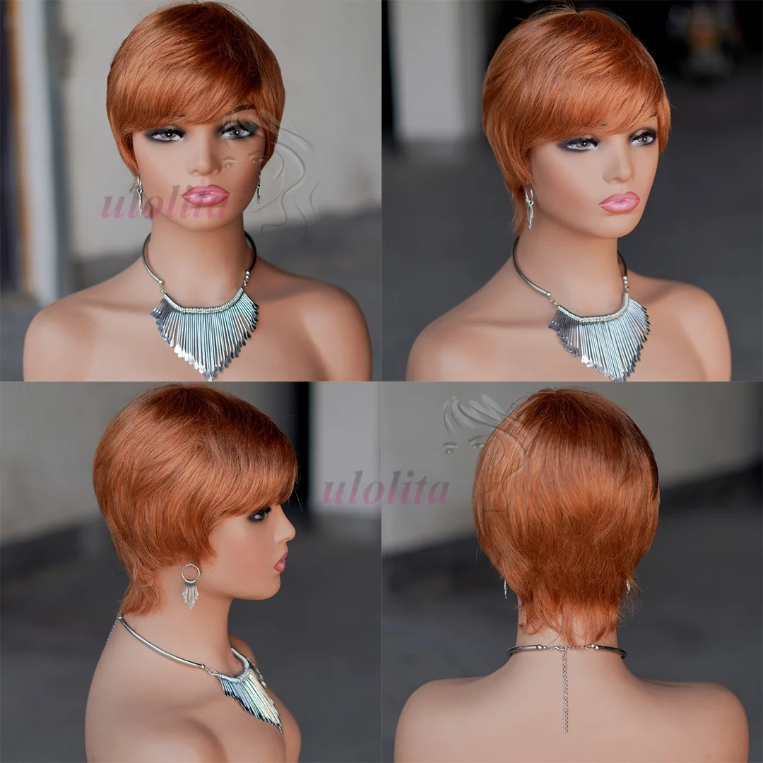 Texture: Pixie Short Cut Colored Straight Human Hair Wigs With Bangs