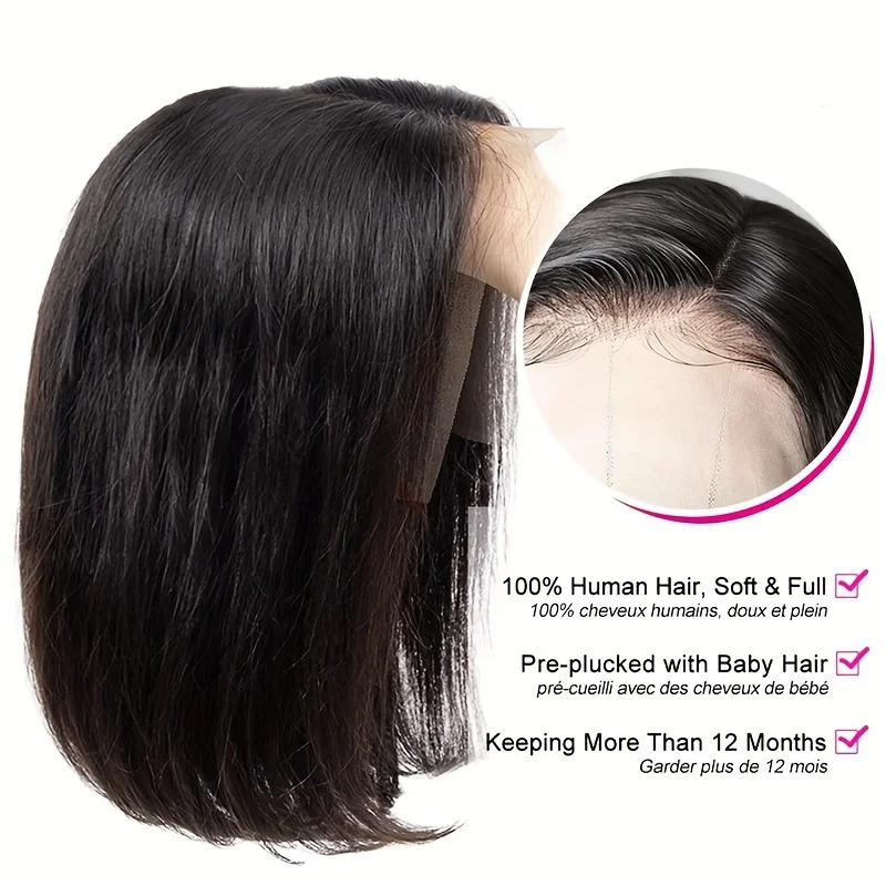 Straight Bob Wigs Human Hair 13x4 HD Lace Frontal Short Bob Wig For Women Pre Plucked 200 Density Natural Short Bob 4x4 Lace Wig